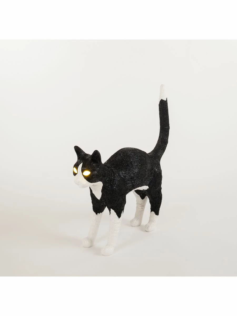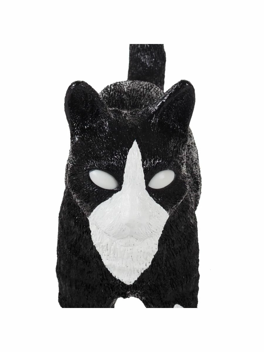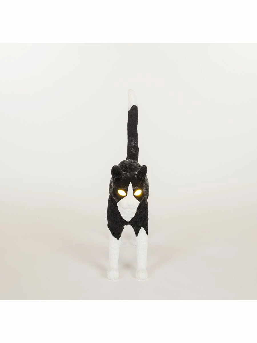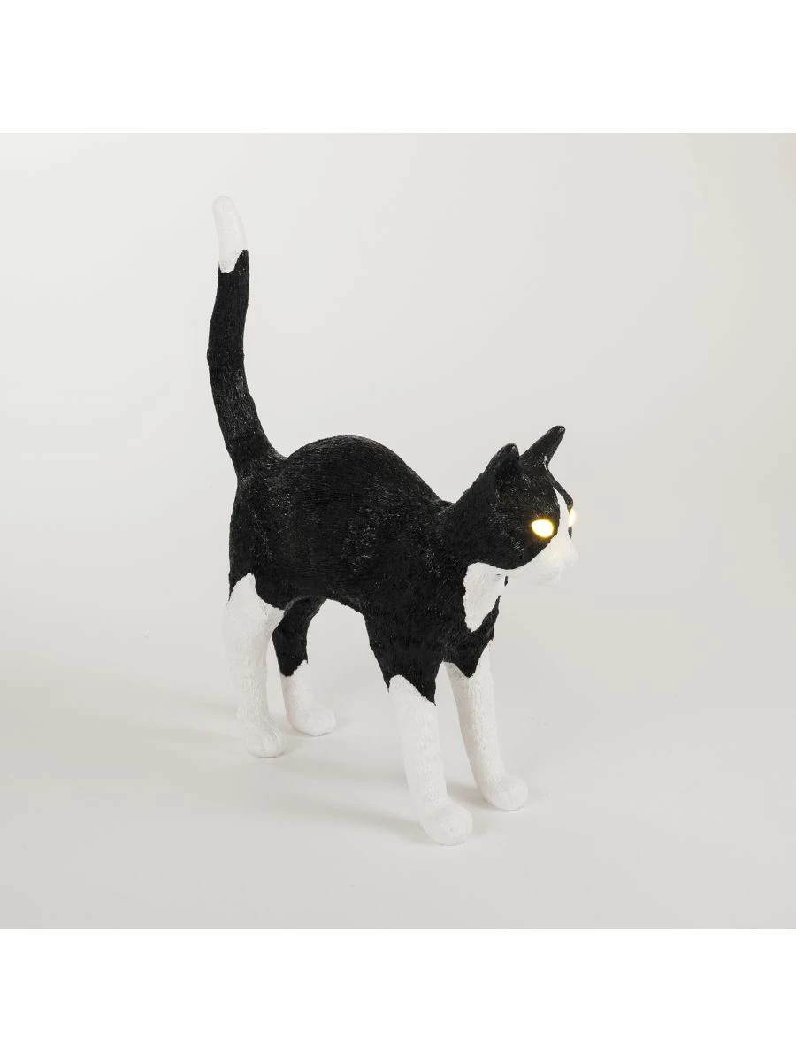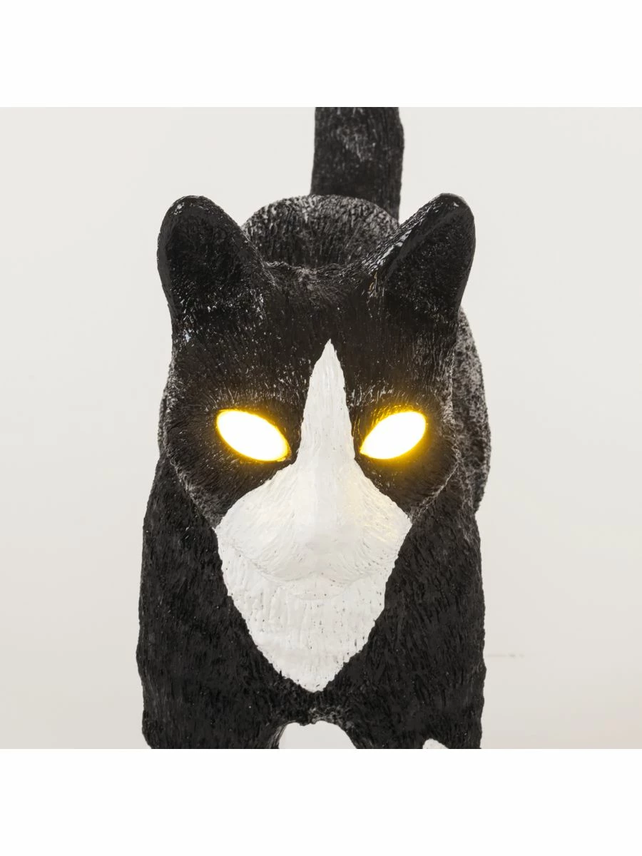 Can travel from room to room like any typical feline. He is rechargeable and his eyes light up when you push his magic gold coloured button!