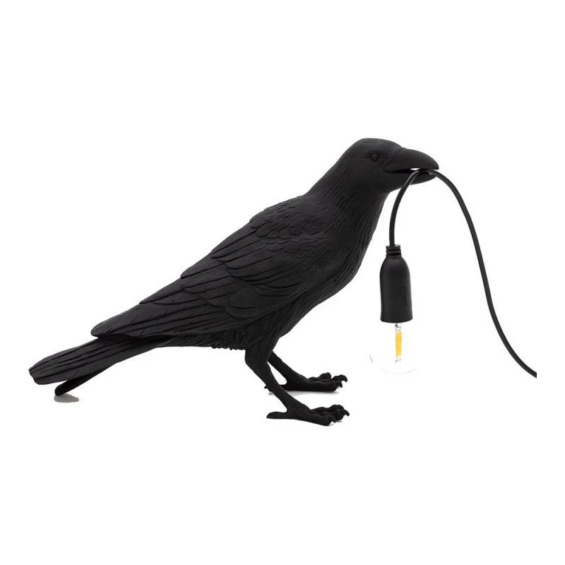 Just like in a fairy tale, three clever crows shed some light so you can find your own way. These friendly and extravagant birds are made of resin in two color variations, designed by marcantonio in three different poses.lighten up your room with the help of a feathered friend.bird lampdesign: marcantoniomaterial: resinmeasurements: cm 32.8 x 14.5 h. 12.3 For indoor use only – led light bulb included.