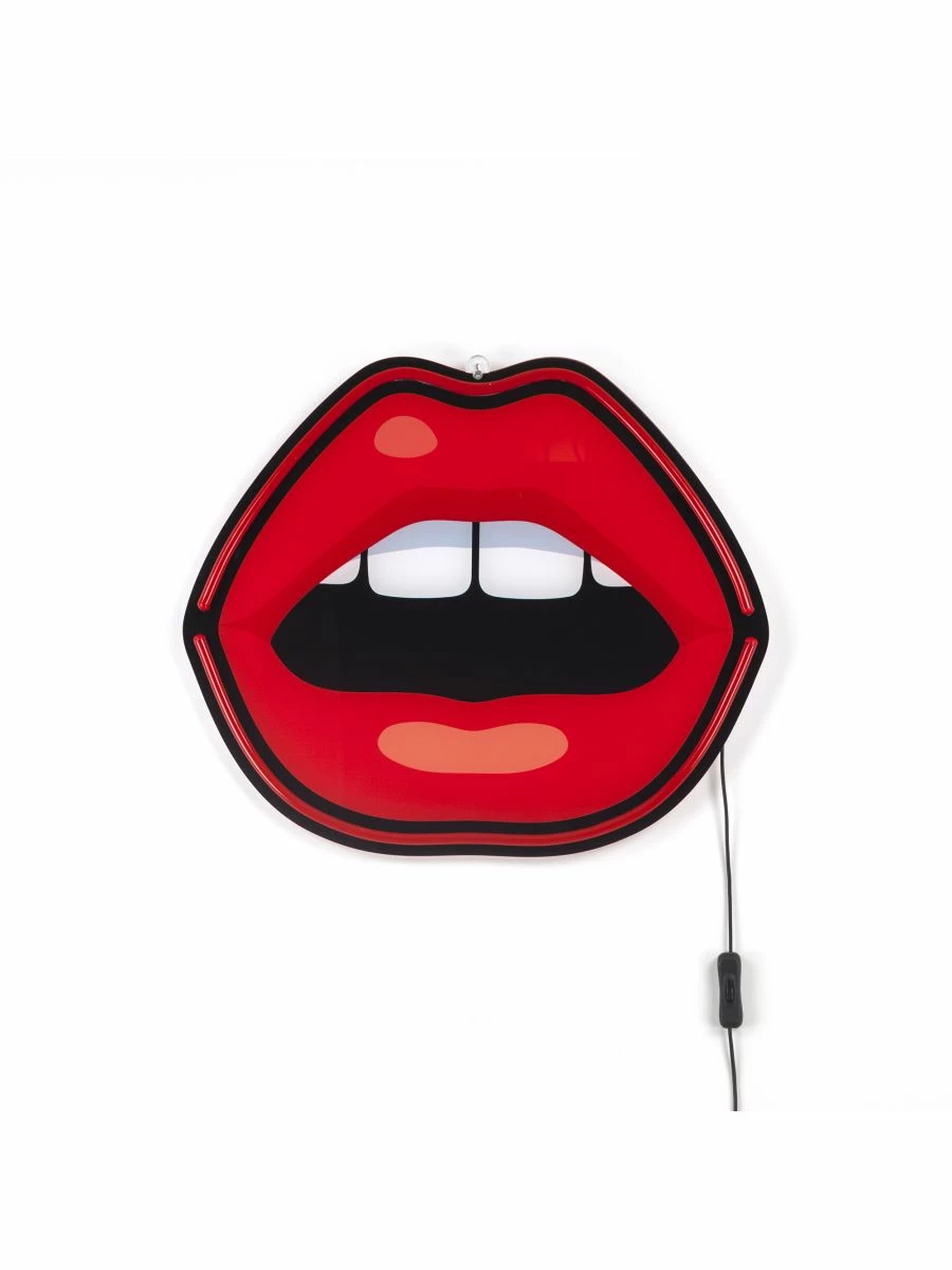 A led wall lamp characterized by a sensual design represents an open mouth, symbol of the Blow collection.