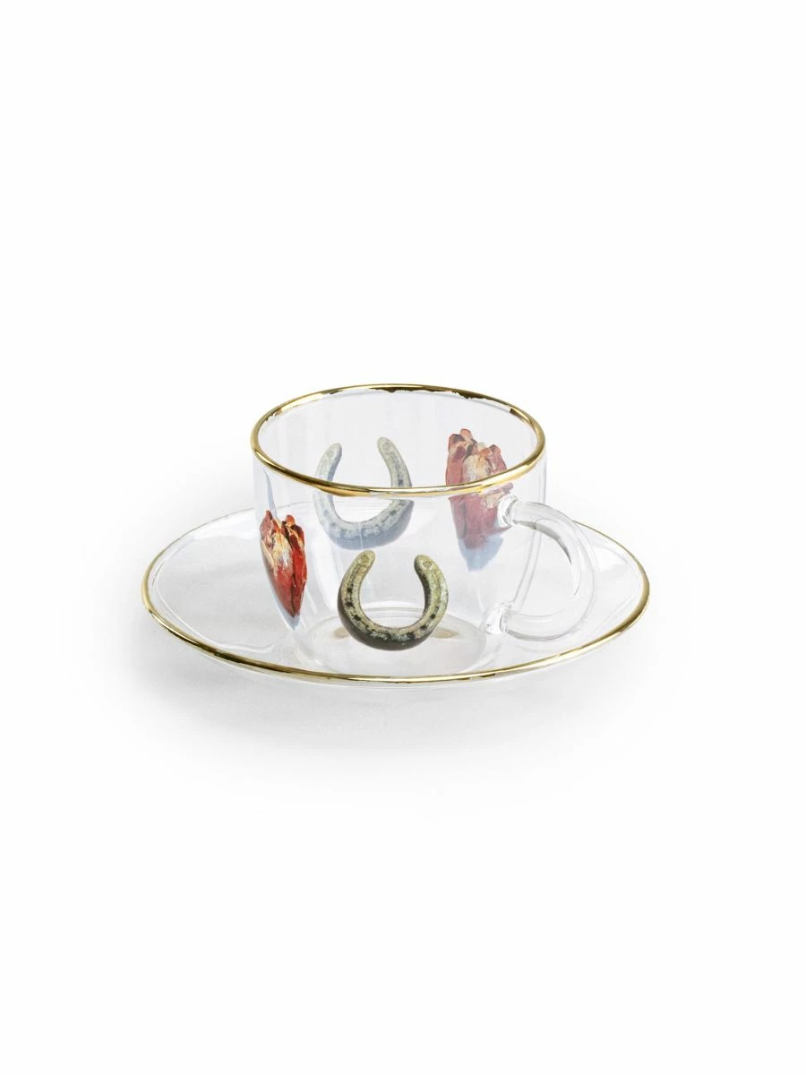 A slightly retro touch for a modern and edgy collection, in classic Toiletpaper style. Coffee Cup Design: Toiletpaper Magazine Material: Borosilicate Glass, Gold.