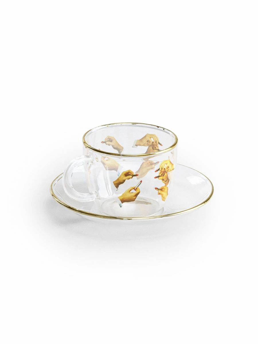 A slightly retro touch for a modern and edgy collection, in classic TOILETPAPER style. Coffee Cup Design: TOILETPAPER Magazine Material: Borosilicate Glass, Gold