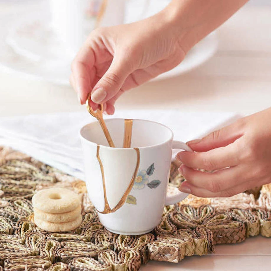 The word Kintsugi is an old Japanese art of fixing broken pottery with gold or silver. The repairs are visible — yet somehow beautiful.