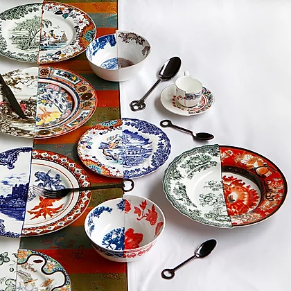 When east and west combine. A collection that reflects the ancient historical western and eastern ceramic production. Hybrid decorations that come from a complex past that evolves into contemporary forms.