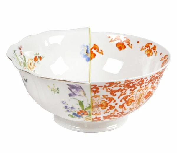La collezione Hybrid di Seletti vuole rappresentare l’eterna attrazione tra Oriente e Occidente.Realizzata da CTRLZAK, è una linea di accessori per la tavola che si ispira alla tradizione storica della lavorazione della ceramica, dividendosi letteralmente tra l’Est e Ovest del mondo.Ogni prodotto presenta una netta separazione grafica in due parti, che corrisponde simbolicamente a due stili e due culture, rendendolo in realtà unico.Fortemente evocativi i nomi di ogni pezzo, perfetti per questa ironica rivisitazione del servizio elegante in porcellana Bone China.