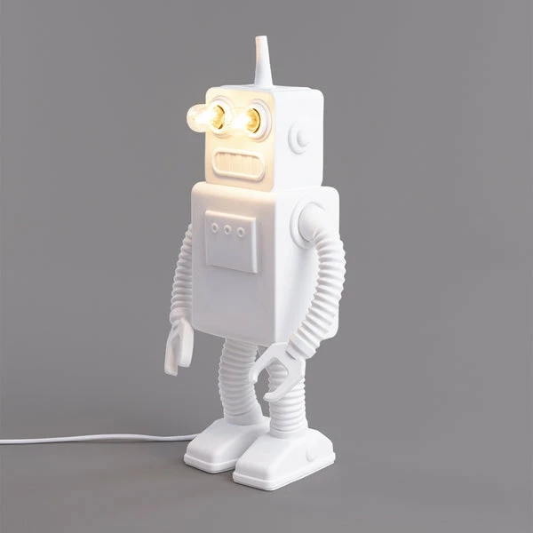Direttamente dalla stanza dei giochi al tuo soggiorno, Robot è una lampada da tavolo in porcellana bianca, pronta ad illuminarti con il suo spettacolo splendente. Design: Marcantonio Materiale: porcellana DIMENSIONI: cm. 21 x 12,5 h. 40,5 ≈ | 8,3 “x 4,9”. h. 15.9 “≈ Solo per uso interno | Lampadina LED inclusa | E14 – 1W – 100 lumen – 2200K | LUCE LED CALDA | Versione UE / Regno Unito: ingresso 230 V – 50 Hz | Cavo: 2,5 mt. – 8,2 piedi