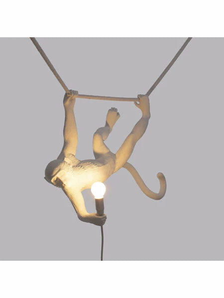 Grazie a Monkey Lamp Seletti, potrete portare nelle vostre case delle simpatiche scimmiette in resina nera, che si divertiranno ad illuminare i vostri ambienti indoor in modo creativo e divertente. Conciliando il mondo degli animali con quello dell’arte e del design, Seletti propone queste simpatiche scimmie in tante pose diverse: la versione da tavolo rappresenta una scimmia che rimane seduta, la scimmietta da terra resta in piedi, la terza è una lampada da parete mentre nella versione a sospensione la scimmietta si regge ad una corda flessibile. La lampada Monkey Seletti raffigura il simpatico primate che regge con una mano la lampada a LED come se fosse una torcia. Materiale: Resina
