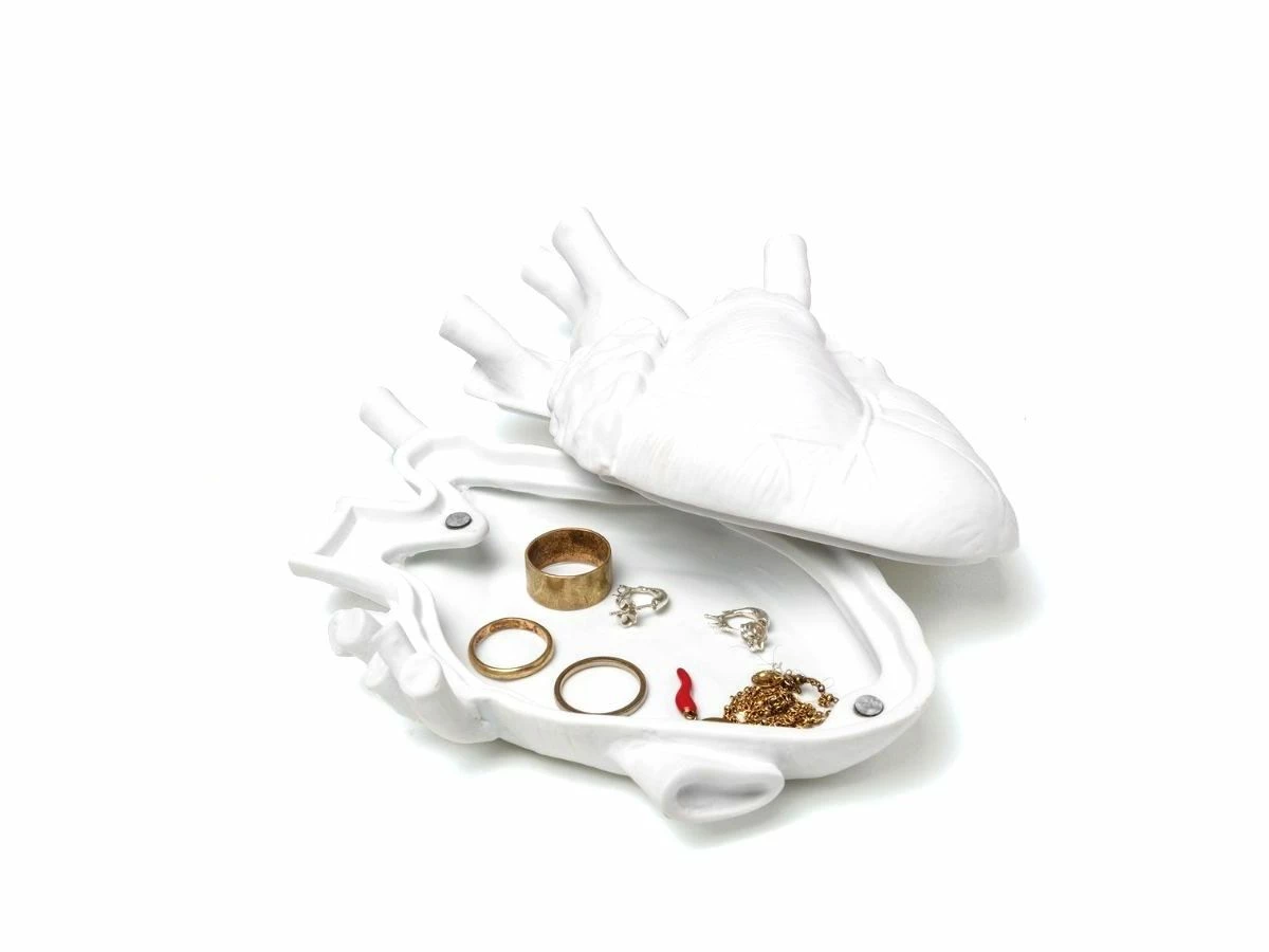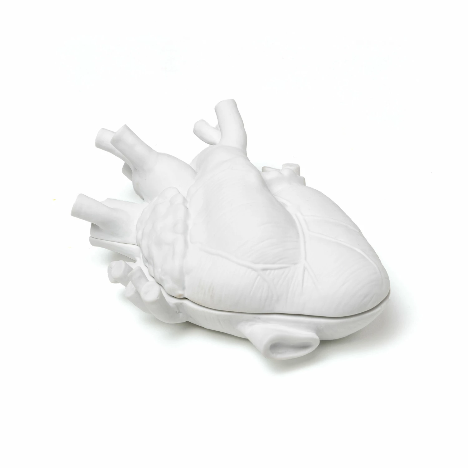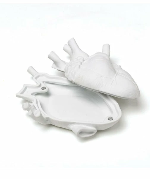 Anatomy of sentiments… Provocative, funny and absurd at the same time, the Love in a Box porcelain box by Seletti reproduces a human heart in an ultra-realistic way! The veins and arteries form a network of different offshoots. Italian designer Marcantonio delivers up an ironic, surreal and subversive vision of the “seat of feelings and love”. When offering your heart, both literally and figuratively, this is the perfect gift for your beloved! You’ll recognise the dark humour of Marcantonio, for whom objects must have character and provoke astonishment, even if it means disturbing people. The Love in a Box box brings an uninhibited, eccentric, arty touch to your decor. It’s displayed in our interiors to decorate as much as to hold all your small objects and treasures. White porcelain box with magnetic closure.