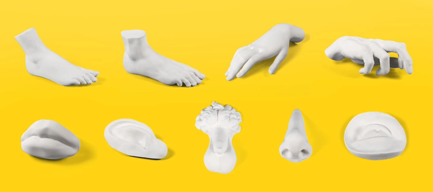 Nine parts of the human body inspired by the work of the best classical Italian sculptors
