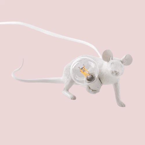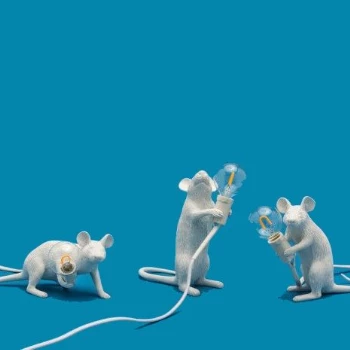 Three little white mice with a very realistic finishing. They are Step, Lop and Mac and they run around the house looking for bizarre objects. The Seletti Mouse Lamp Sitting, Standing and Lie down light up their way at night with their little bulbs. Outlandish sculpture that will not go unnoticed.