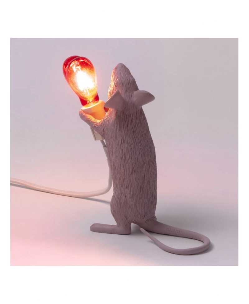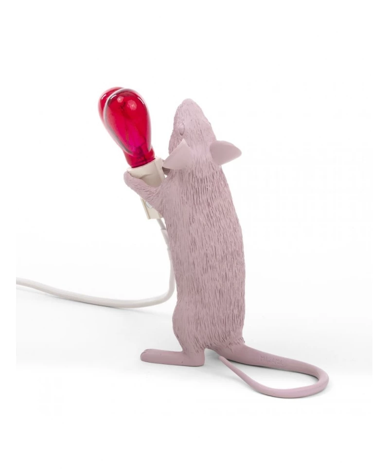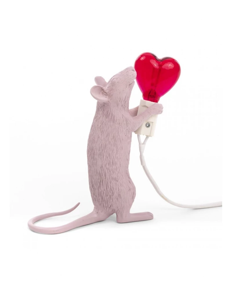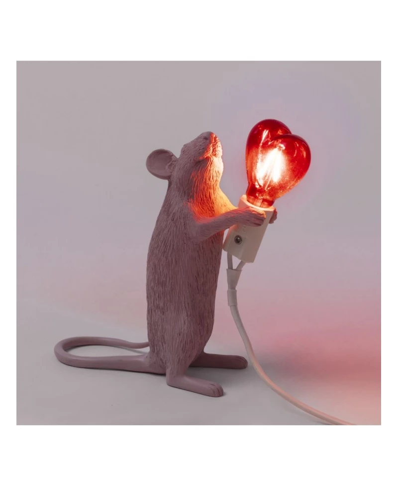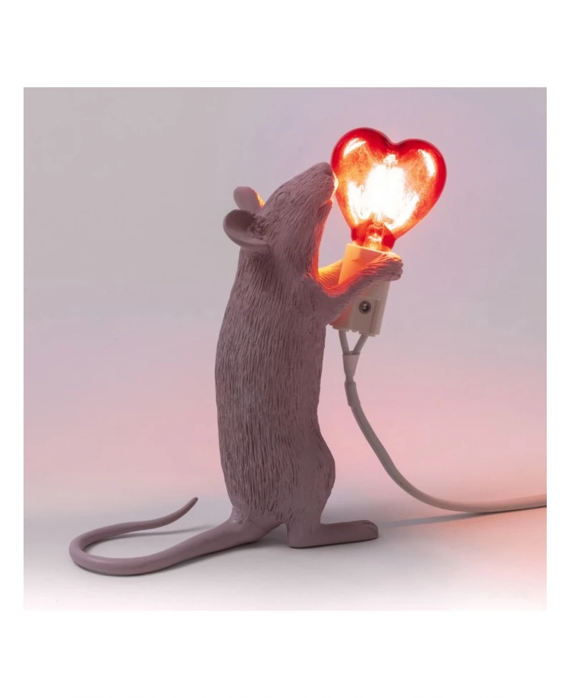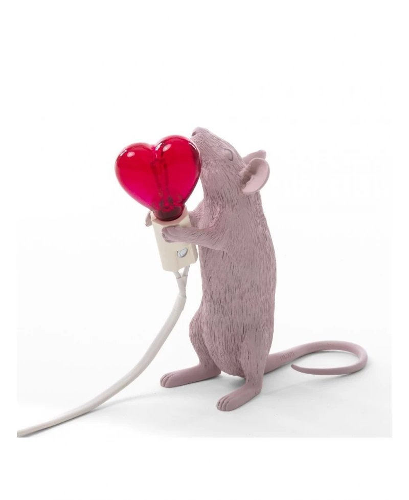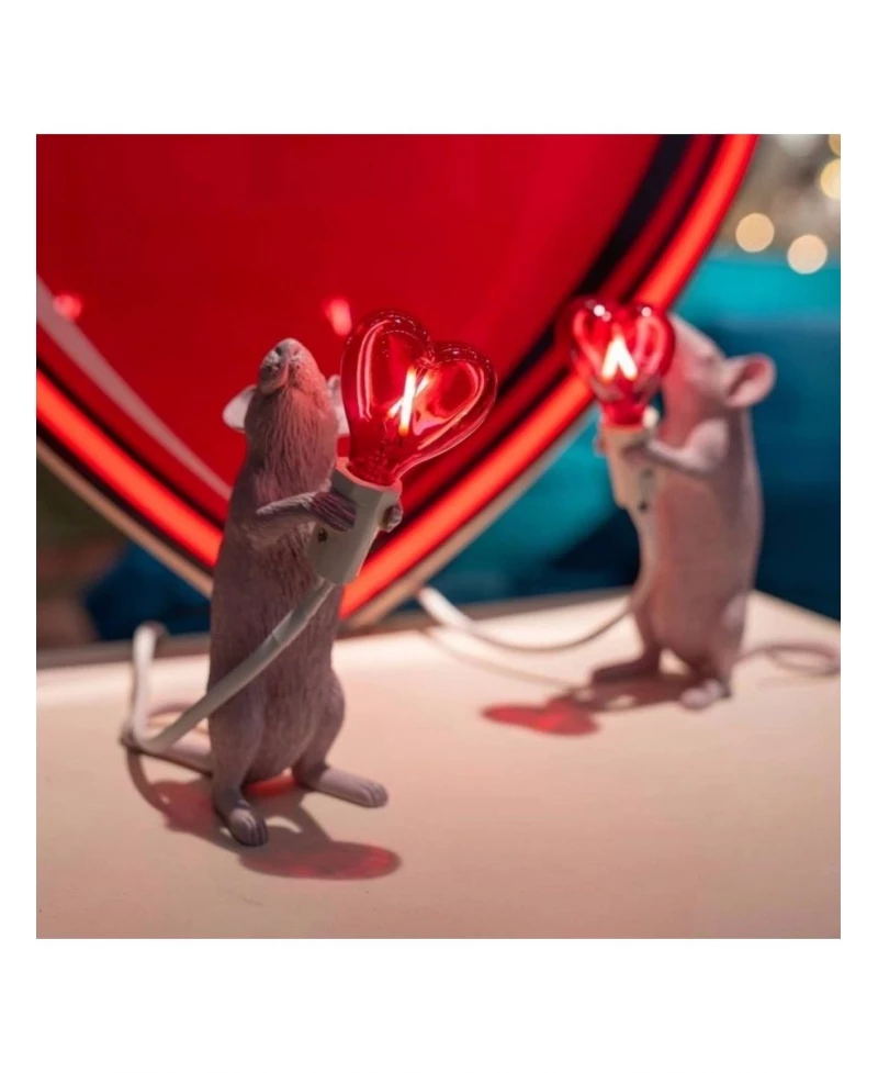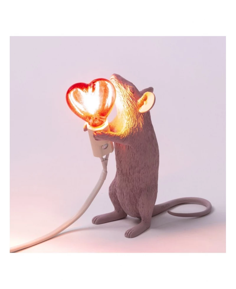 Lámpara fabricada en resina en blanca por el diseñador italiano Marcantonio Raimondi. Esta lámpara, como el nombre sugiere, tiene la forma de una rata, que ilumina el camino con una bombilla con forma de corazón en su mano. Además de decorativa, es una pequeña obra de arte.