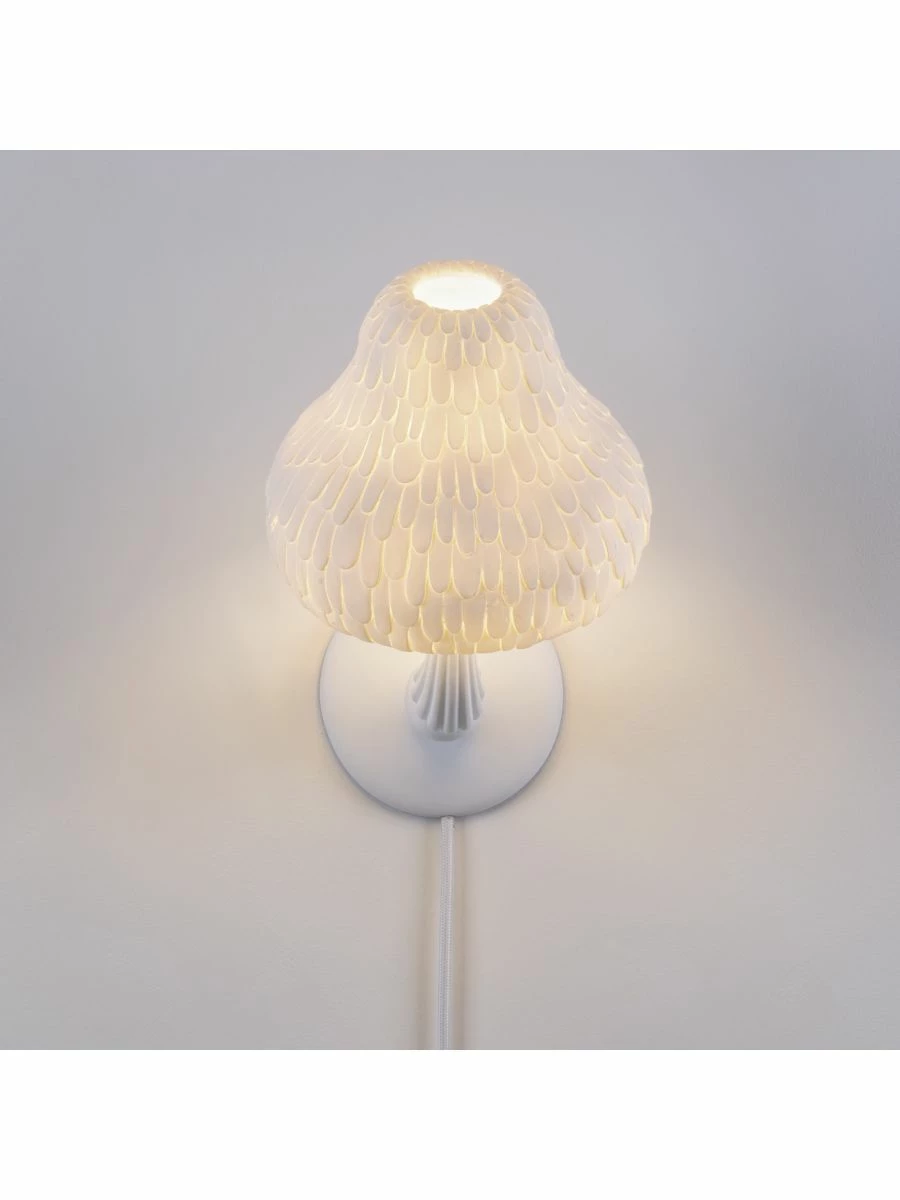 Halfway through flora and fauna, the mushroom becomes a curious and quirky character, who looks like it’s coming straight out of Fantasia. With his “Mushroom Light” Marcantonio creates a sculptured lamp, giving a Disney twist to its classical shape.