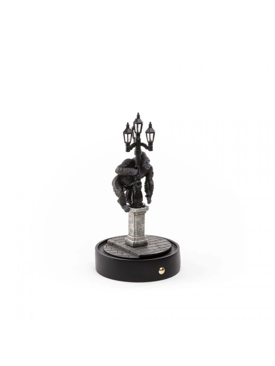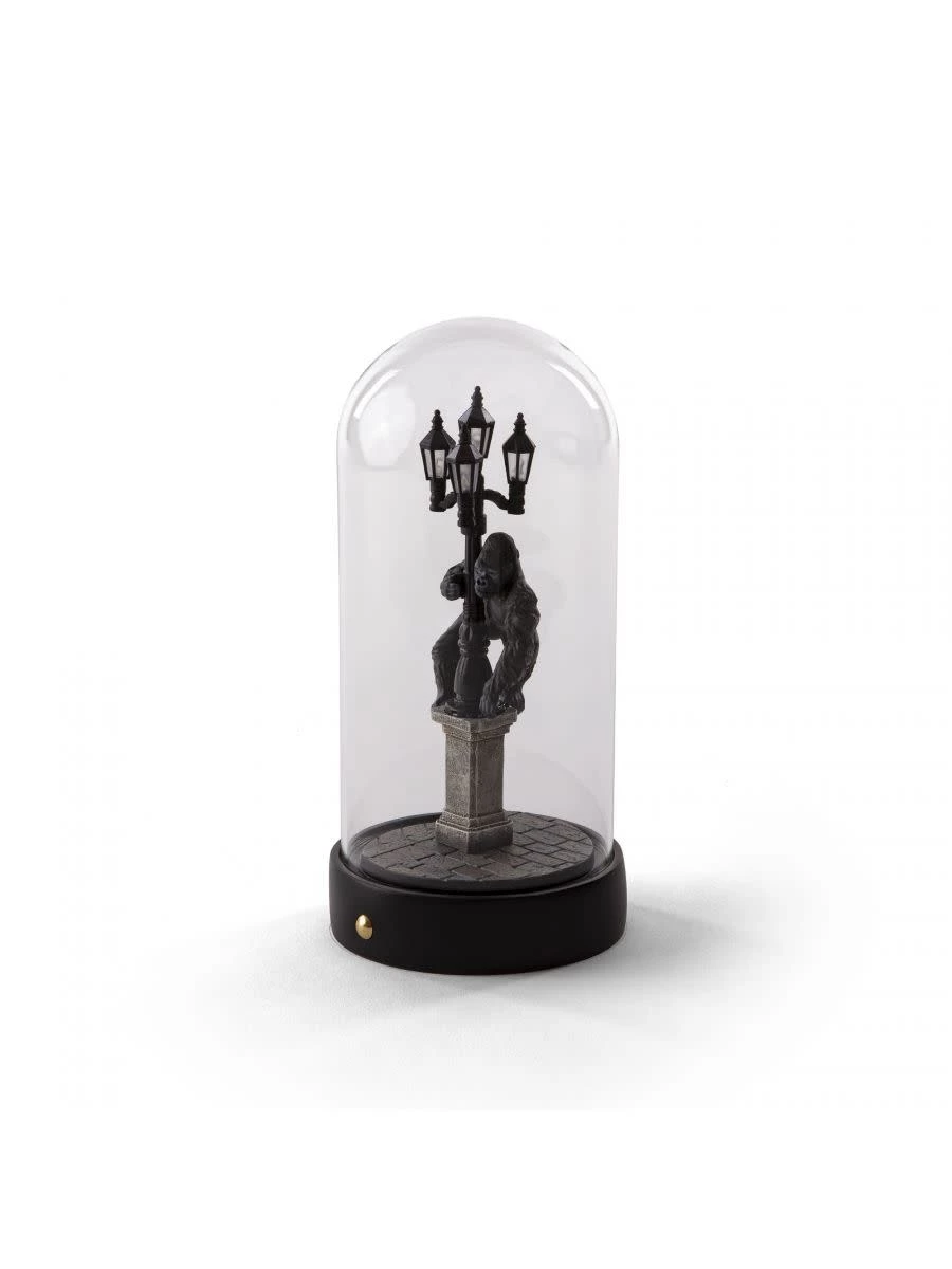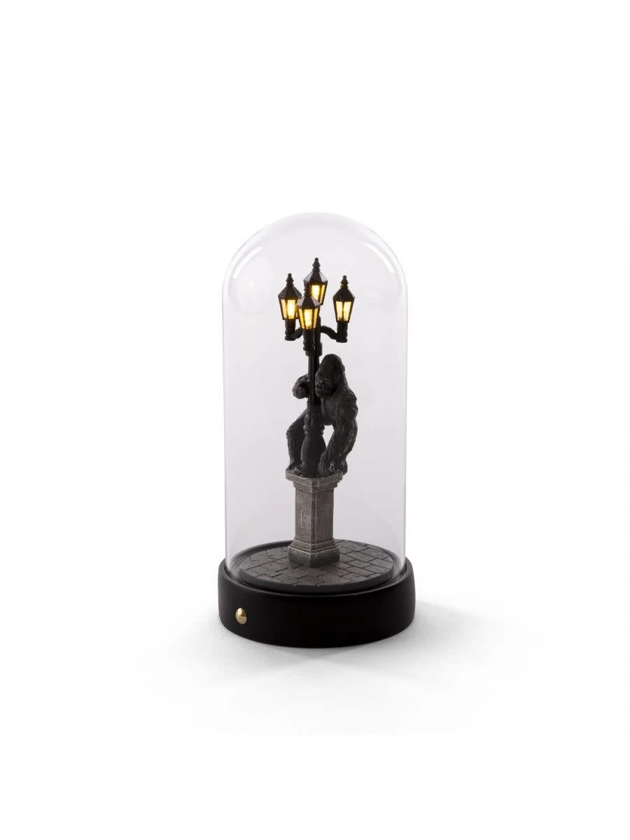 The protagonist of the jungle has arrived in the city and watches over the neighborhood from its street lamp. Another scenario under glass that shines a light on a scene that seems coming out from a noir movie, with a touch of 80’s sci-fi.