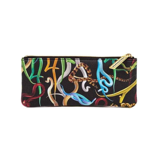 There’s something about a collaboration of minds that makes a piece stand out even more than it already does and the Seletti x ToiletPaper collaboration is of no exception. This stunning pencil case isn’t just practical, it’s incredibly stylish and an iconic piece too. The beautiful black background plays home to the stunning multi-coloured snake design – yet another striking design that ToiletPaper has become known for. Finished off perfectly with a gold zipper and embellished ‘ToiletPaper’ tag – this pencil case is this pencil case of the season. Whether you use this one, or collect them all, keep your stationary in style thanks to Seletti x ToiletPaper Description 21 x 9 cm. Materials PU leather main, polyester lining, graphic print. Wipe clean, do not wash.