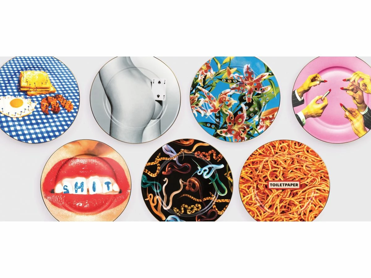 The unique porcelain set of plates gives every table the iconic spirit of the magazine Toiletpaper.