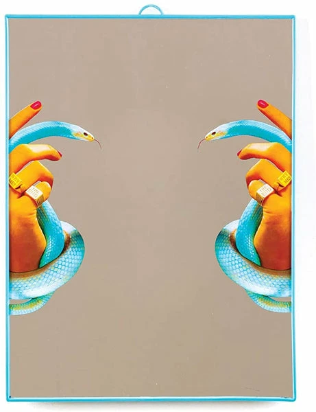 Realizzato in vetro specchiato. Questo specchio fa parte di una collezione di progetti e collaborazioni tra Seletti e Toiletpaper che ben si amalagamano insieme, come se fossero tutti parte di un grande e fortunato puzzle. Sedie imbottite, poltrone, vasi, cuscini e adesso anche specchi: le parole chiave sono indubbiamente “divertimento”, “colorato” e “creatività”. Puoi accostare questo specchio all’ambiente che preferisci: zone living per mostrarlo agli ospiti o in aree più intime della casa; ovunque deciderai di posizionarlo questo specchio rifletterà la tua immagine ma soprattutto la tua personalità: forte e intensa come questa collezione.