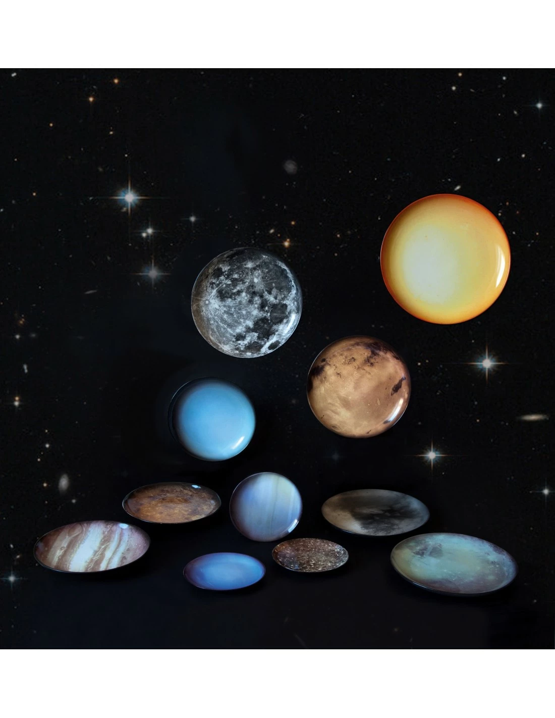 A visionary and poetic collection inspired by the universe. Plates with captivating images and cutlery and accessories with bronze finishes, inspired from space and space missions.