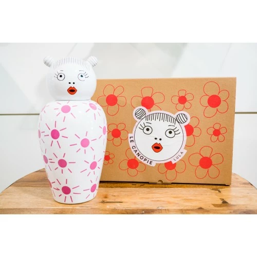 La designer Elena Cutolo ha dato vita alla collezione di vasi Canopie, raffiguranti ognuno giovani fanciulle provenienti da paesi lontani. In particolare, Lula rappresenta l’Oceania attraverso i tratti somatici tipici del posto. Si tratta di un oggetto home decor dal design moderno ma assai peculiare, dai colori forti e che di certo non passa inosservato. È pensato per arredare una casa giovane portando un tocco di colore e luminosità all’ambiente circostante. Inoltre può essere un’idea regalo home decor per le persone che sanno apprezzare il gusto eccentrico di soprammobili dal carattere deciso. Dimensione 17,5 x 25,5/37 cm