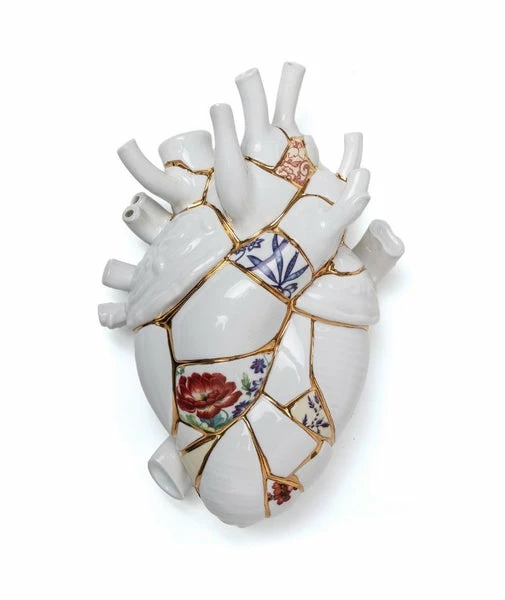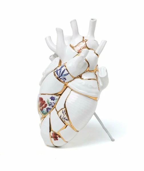 Love in Bloom Kintsugi Vase è il famosissimo vaso a forma di cuore by Seletti divenuto ormai un oggetto ricercatissimo. Nella versione Kintsugi si fondono due stili, apparentemente in contrasto, in grado di affascinare tutti: la delicata filosofia orientale e la pragmaticità occidentale Una scultura, un complemento di design, un decoro prezioso, un vaso, un motivo interessante, tante sono le anime di Love in Bloom che si veste Kintsugi. Si raggiunge il massimo del Cult con questa fusione di linee e stili, da regalare sempre e, a maggior ragione, a San Valentino. Ideato da Marcantonio, Designer eclettico per Seletti.