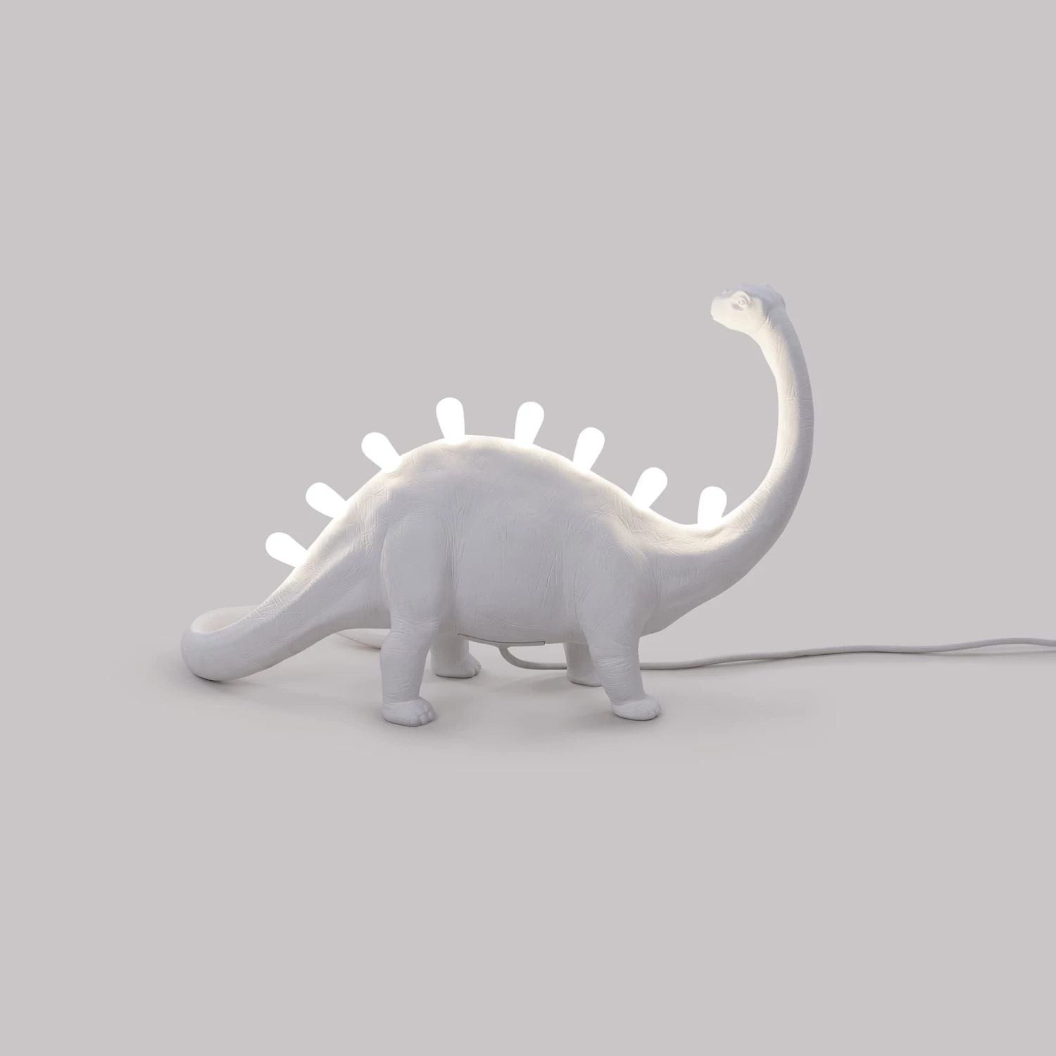 The Jurassic Lamps are made out of white resin and come in 2 different options, Brontosaurus and Tyrannousaurus. They mount respectively 8 and 7 warm LED light bulbs.
