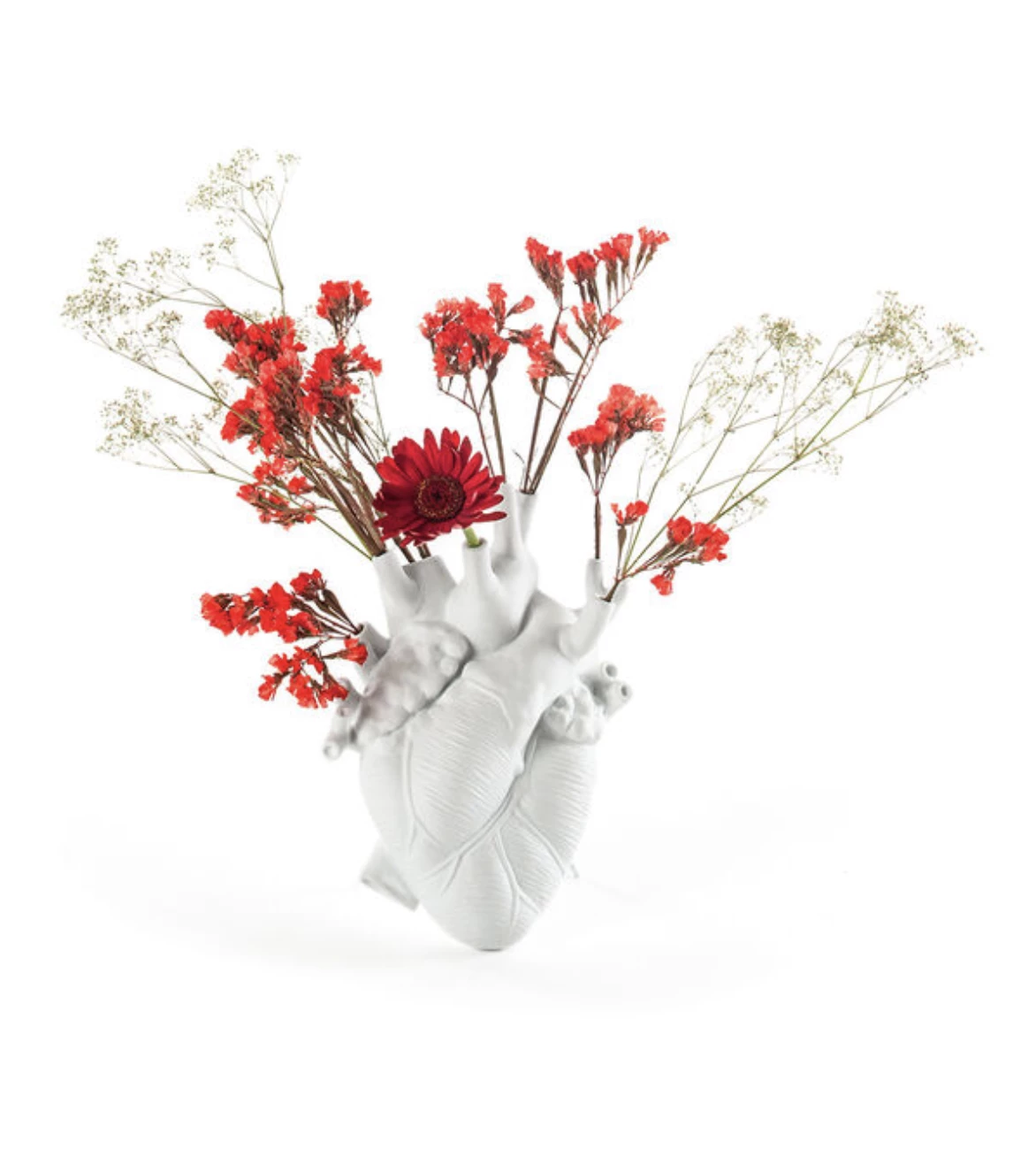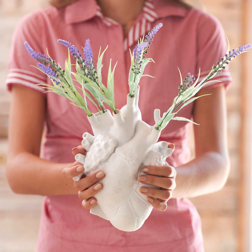 This heart-shaped porcelain vase is modern love translated into a romantic but unpredictable gift,