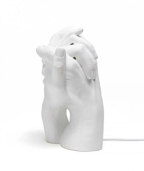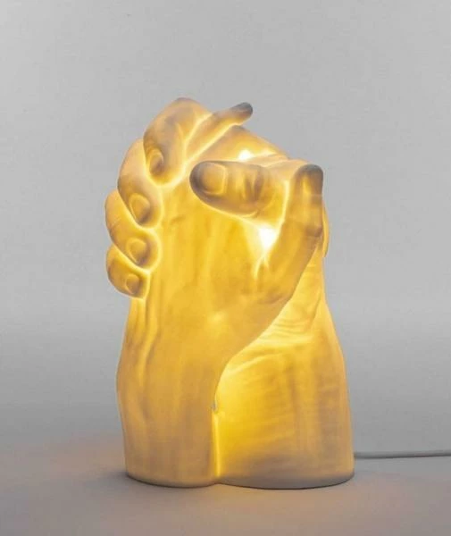 La lampada With me lamp disegnata da Marcantonioper il marchio Seletti, illumina e scalda il cuore. Due mani si stringono a vicenda, regalandoci una splendida immagine d’amore e di poesia. Materiale: porcellana Misure: cm 21 x 12 x 40 cm Dettagli: • solo per uso interno • lampadina LED inclusa • LED E14 – 6W – 550 Lumen • 3000K WARM LED LIGHT • EU/UK version: Input 230V – 50 Hz • Cable: 2,5 mt. – 8.2 ft